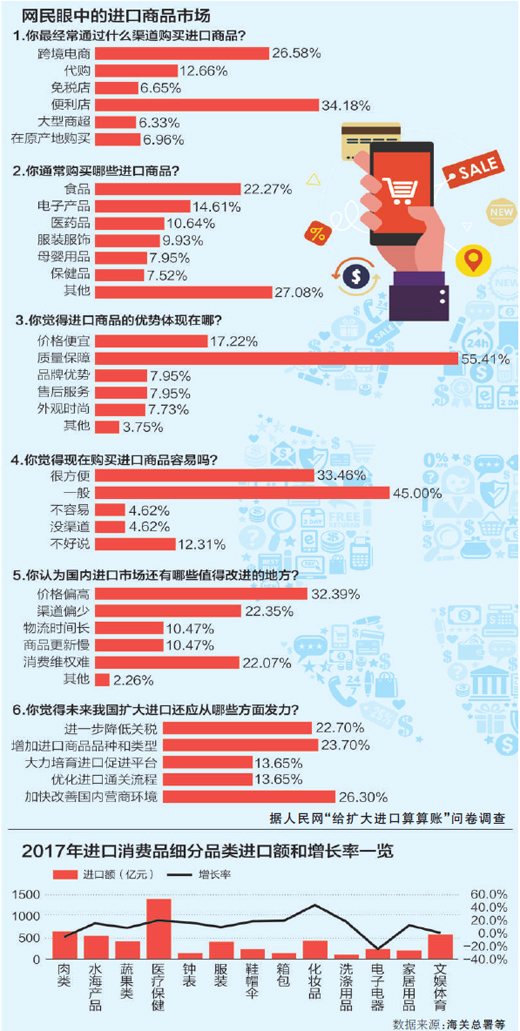 “各品类商品进口额和增速的差异,从侧面反映出中国社会环境和人口结构之变。”中国国际商会的专家认为,二孩家庭、消费升级、产业转型、互联网浪潮下的新商业模式等,都成为影响中国进口消费品的因素。