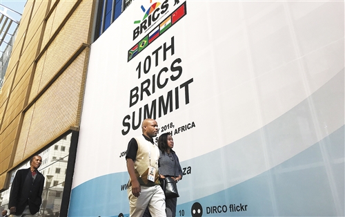 2018年金砖国家领导人会晤在南非约翰内斯堡举行。图为人们从会晤场馆外走过。 经济日报记者 蔡 淳摄