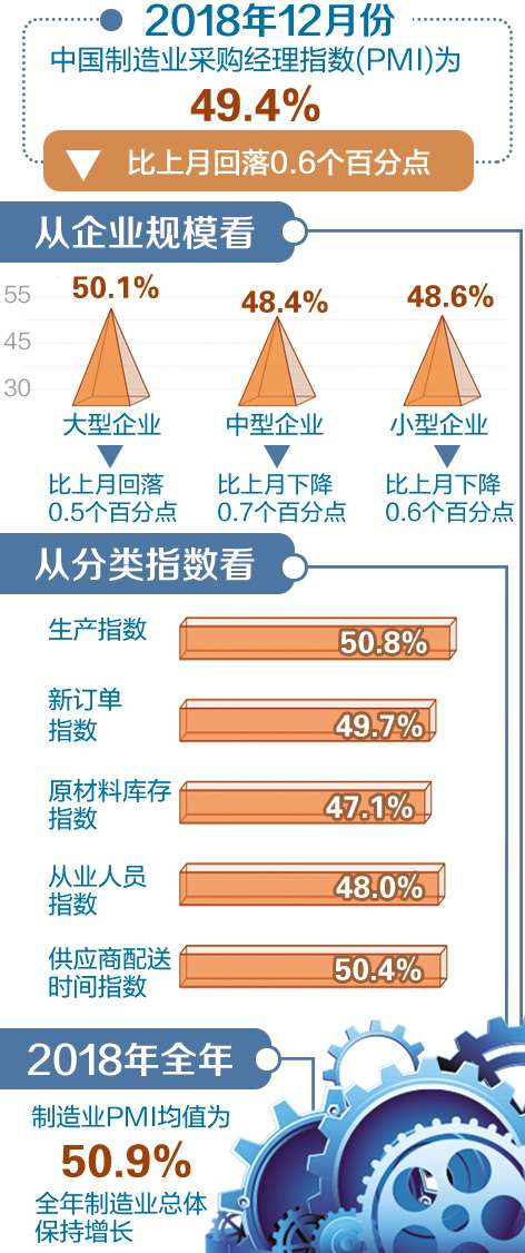 2018年,按照高质量发展要求,有效应对外部环境深刻变化,我国制造业运行保持在合理区间。但也要看到,随着经济运行不确定性的增加、外部环境日趋复杂严峻,制造业在新的一年面临的下行压力将会加大。