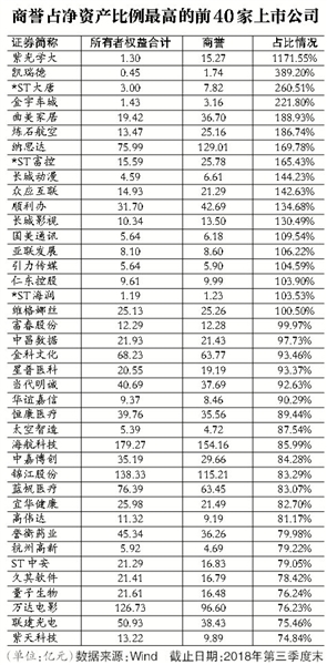 商誉价值 18家公司商誉价值超过净资产