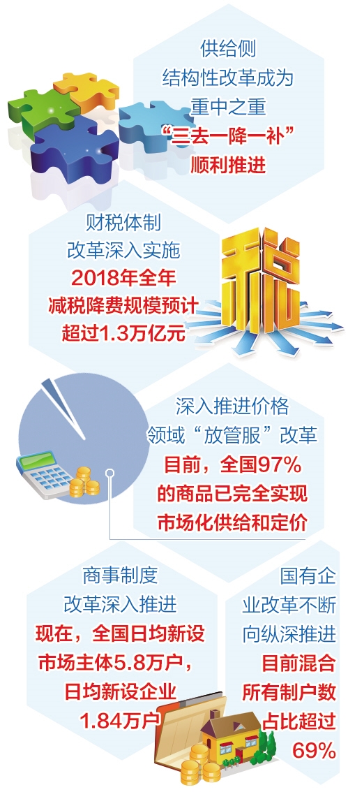 5年来,供给侧结构性改革扎实推进,财税金融改革深入实施,混合所有制改革、产权保护、激发和保护企业家精神“三改联动”,开放型经济新体制不断完善……一项项改革相继落地、持续加力,让人民群众有了更多实实在在的获得感、幸福感和安全感。