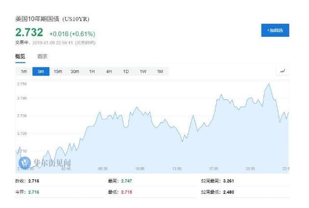 避险情绪降温,美元兑日元跌0.2%,至108.47,美元兑瑞郎跌至三个月新低。美债收益率涨,10年期美债收益率涨逾1个基点,重回2.73%,最高触及2.75%的两周新高。