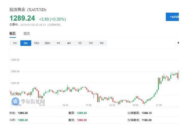 美股开盘后,现货黄金转涨0.3%,重新逼近1290美元/盎司,距离上周触及的七个月新高还差近10美元。