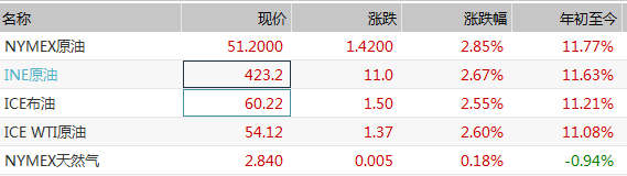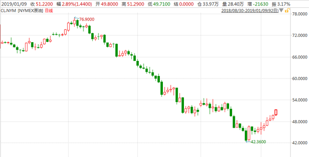 国际油价连涨八日,布油刷新去年12月17日以来新高至60.35美元/桶,美油一度涨3%,刷新近一个月新高至51.29美元/桶,均较2018年12月底触及的一年半低位反弹20%,双双进入技术性牛市,但较去年10月高位仍跌30%。