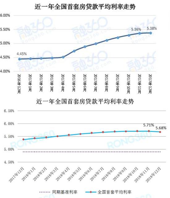 2016年12月至今,全国首套房贷款平均利率走势 图片来源:融360大数据研究院