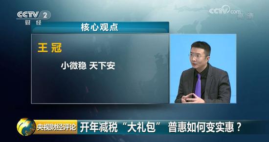 央广财经评论员 王冠:去年底以来,全国都在进行的个税专项抵扣,针对大家非常关心的养娃、养老、医疗、房贷等等,都是非常精准的。这次对于小微企业,实际上强调的也是一个“准”字,让企业有更多的奔头。去年底结束的中央经济工作会议提出,要激活微观市场主体的活力,什么是微观市场主体?从企业到个人尤其是小微企业,这是最典型、最生动的微观市场主体。