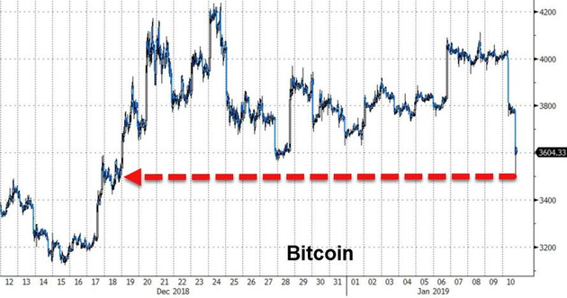 1月10日周四,数字货币全线大跌血流成河,“带头大哥”比特币凌晨一度跌逾400美元,跌幅超过10%至3591美元下方。尽管当前已经重回3700美元上方,但这一价格仍创下三周新低。