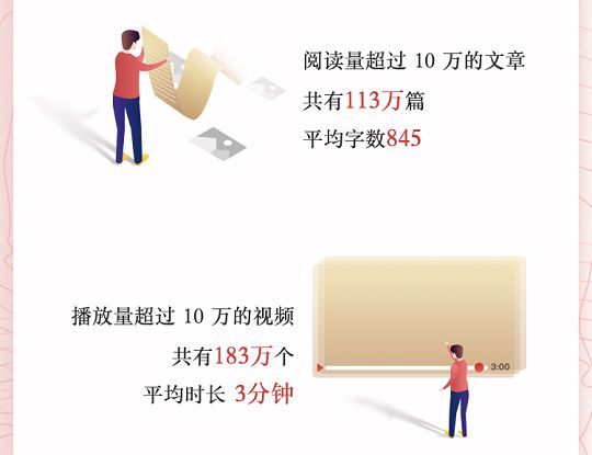 2018年,今日头条创作者们发布的文章平均字数为845字,视频长度平均为3分钟。这些内容在今日头条平台上收获了良好的分发效果,平均每150篇文章中有一篇阅读量超过10万,平均每230个视频中有一个播放量超过10万。