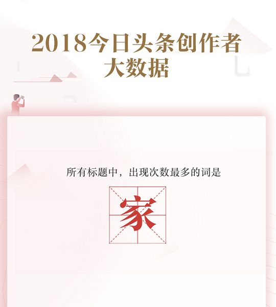 近日,今日头条公布了2018年头条创作者大数据。数据显示,“家”成为最常出现在今日头条创作者标题中的关键词。
