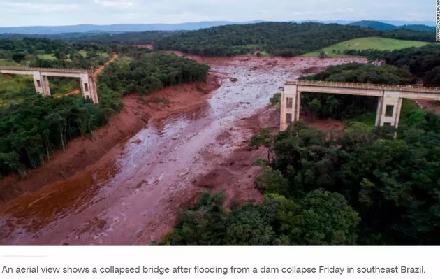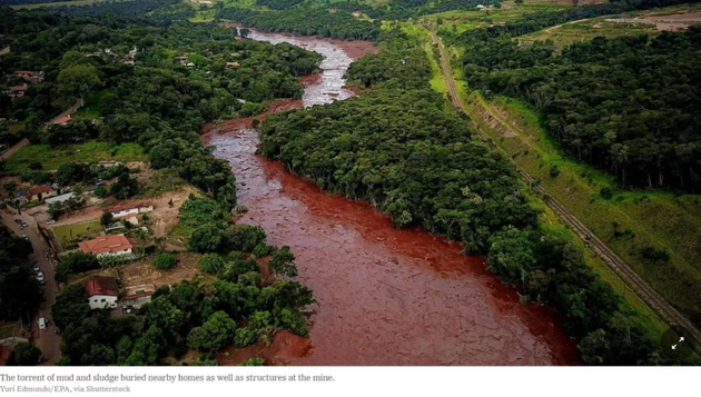 三年多前的2015年11月5日,同样位于米纳斯吉拉斯州马里亚纳市附近的Fundo铁矿石尾矿坝发生决堤溃坝事故,造成19人死亡,一些村镇被淹。该尾矿属于淡水河谷和必和必拓合资建立的公司Samarco。