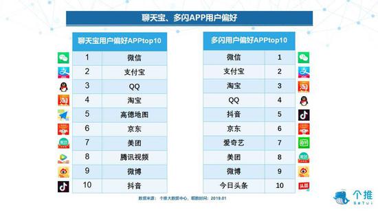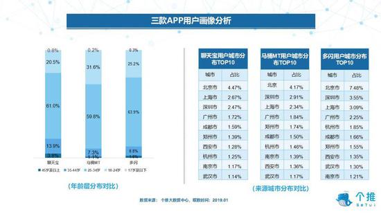 三款应用中,多闪明显主打年轻用户,而聊天宝的奖励措施又偏向于用户下沉策略,马桶MT的用户定位比较模糊,不过数据分析显示,三款应用的用户特征较为相似,均以男性、25-34岁的85后工作人士为主,且主要分布在北上广深等一线城市,但多闪的用户对抖音和今日头条的使用明显多于聊天宝,可见头条系产品对多闪起到了重要的导流作用。