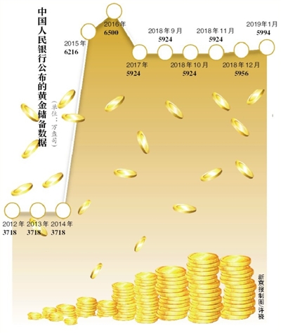 从官方公布的数据来看,中国央行连续两个月“增持”了黄金。11日央行公布的数据显示,截至2019年1月末,中国官方黄金储备达5994万盎司,环比增长38万盎司。