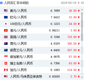 2月18日,人民币兑美元中间价下调36点,报6.7659,上一交易日中间价报6.7623。上一交易日官方收盘价6.7802,上一交易日夜盘收报6.7750。同时,中国央行公开市场今日将不进行逆回购操作,本周公开市场没有逆回购到期。