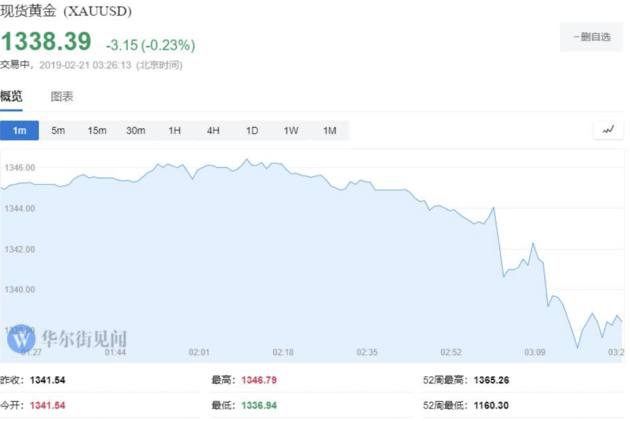 现货黄金跌幅扩大至0.2%以上,跌破1340美元关口。