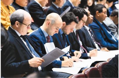3月5日,第十三届全国人民代表大会第二次会议在北京人民大会堂开幕。图为外国驻华使节旁听大会。 新华社记者 高 洁摄