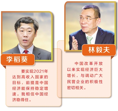 “要实现2021年达到高收入国家的目标,前提是中国经济能保持稳定增速。”李稻葵委员认为这不算太难,“我相信中国经济稳得住”。