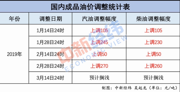 进入2019以年,OPEC+开始落实减产计划,油价逐渐出现恢复性上涨,1月初国际油价曾创下近十年来最长的连涨纪录。截至目前,国内成品油价在2019年内已连续上调四次,汽油已累计上涨了670元/吨,柴油累计上涨了645元/吨。