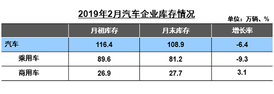 总体来看,我国2月汽车产销分别完成141万辆和148.2万辆,环比分别下降40.4%和37.4%,同比分别下降17.4%和13.8%。1-2月,汽车产销分别完成377.6万辆和385.2万辆,产销量比上年同期分别下降14.1%和14.9%。值得一提的是,2月汽车企业库存由月初的116.4万辆降低到了月末的108.9万辆,其中乘用车企业库存降低9.3%,商用车企业库存增长了3.1%。