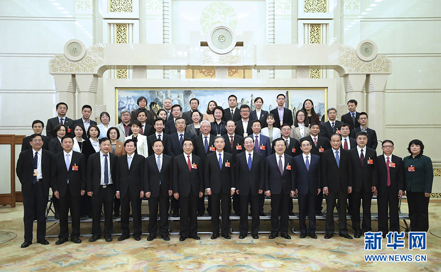 3月13日,中共中央政治局常委、全国政协主席汪洋在北京人民大会堂看望参加全国政协十三届二次会议新闻报道工作的人民日报、新华社、中央广播电视总台、光明日报、经济日报、中国日报、人民政协报、中国新闻社等中央主要新闻单位以及中国政协杂志社的负责同志和编辑记者代表,向参加大会报道的新闻工作者表示诚挚慰问和衷心感谢。 新华社记者 鞠鹏 摄