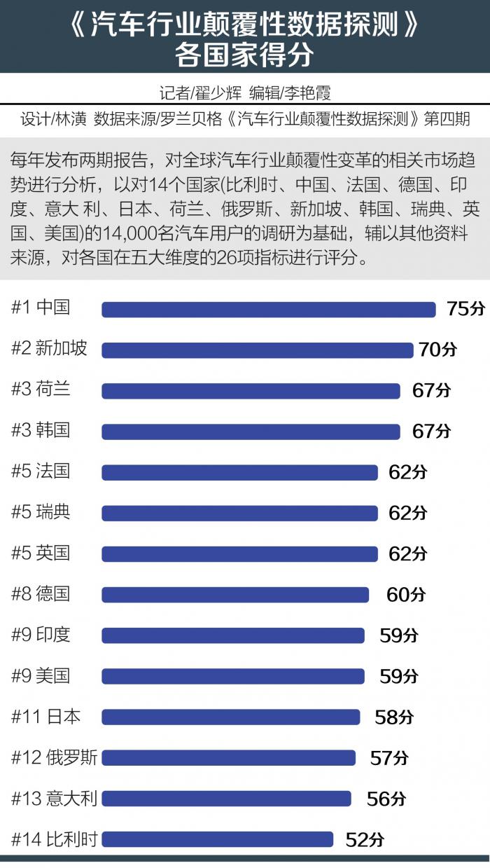 值得注意的是,中国评分大幅上升主要得益于在电动车市场的领先地位——其销量占全球70万电动车销量的一半以上。此外,中国的政策环境也较为开放。