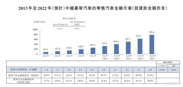 其中,豪华汽车市场在需求增加且多元化贷款接受度上升的促进下,总贷款金额预期将于未来数年呈大幅增长,到2022年总贷款金额将达到人民币7,664亿元。