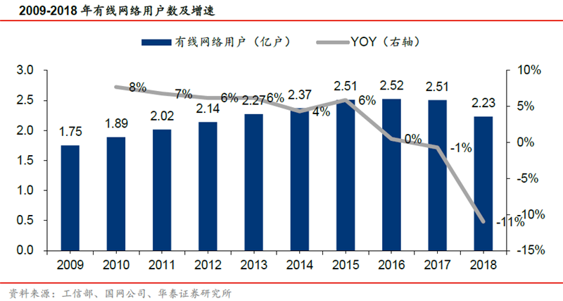 广电行业曾经是视频产业链的霸主,1999年后国家推动制播分离、台网分离,2005年后IPTV等新型集成平台出现,2009年后三网融合开展,推动视频产业链逐渐市场化,竞争对手如电信系、互联网视频平台等纷纷涌现,带来了内容的丰富和基础网络的提升,提供诸如互动等更好的用户体验,而受制于划省而治和网络建设缓慢,广电主业竞争力渐弱,面临有线电视用户流失、宽带市场占有率较低的诸多挑战。
