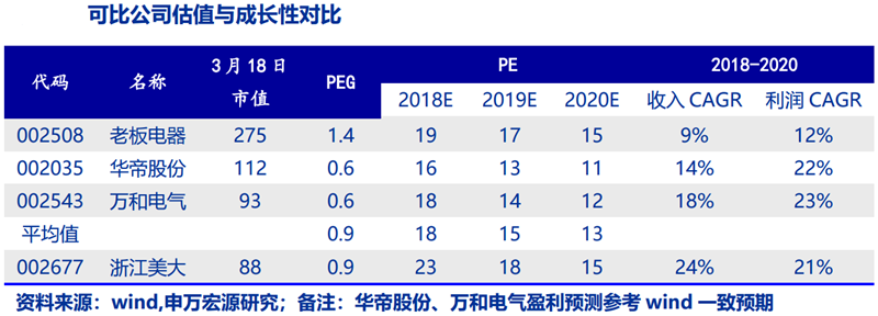申万宏源预计公司2018-2020年归母净利润为3.78亿元、4.78亿元和5.83亿元,分别同比增长24%、26%和22%,对应每股收益0.59元、0.74元和0.90元。公司所处行业正处于高速增长阶段,作为行业龙头享有一定估值溢价具有合理性,申万宏源认为公司2019年合理估值20-22倍,首次覆盖给予“增持”投资评级。