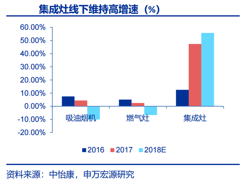 申万宏源认为,集成灶相对于传统油烟灶具,有着节约空间、特别是吸烟效果好等新兴特点,目前渗透率依然较低(不到10%),随着消费者教育强化,未来渗透率仍有提升空间。其次,分体式烟机厂商顾虑集成灶替代作用重心并未转移,而综合家电品牌缺乏专业优势,美大首创集成灶品类,专业品牌和渠道竞争优势不会轻易瓦解,行业地位比较稳固。