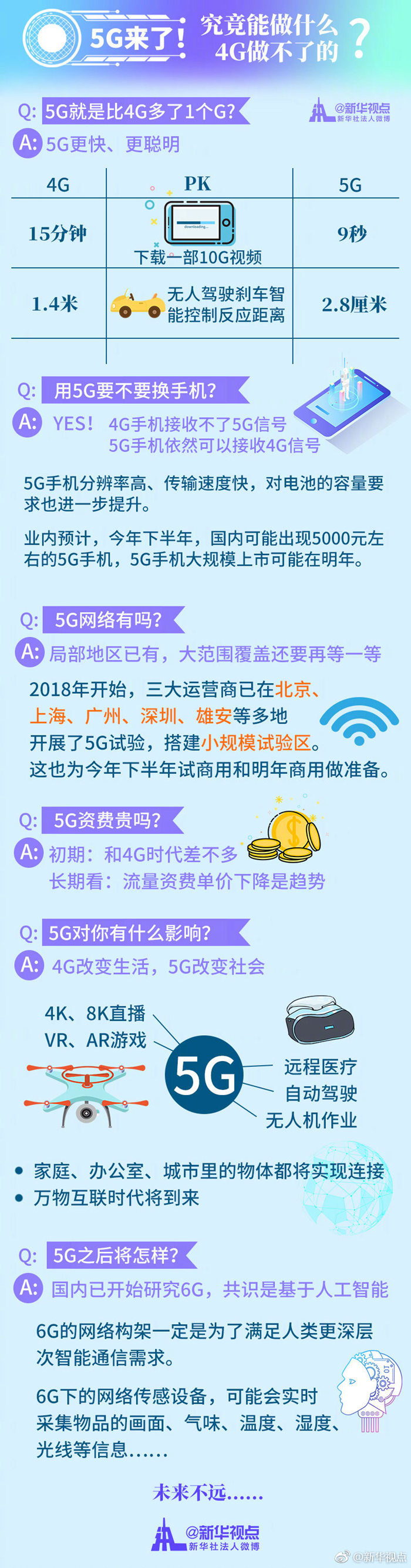 今年全国两会和央视春晚也搭建了5G网络。业内预测,不少城市的火车站、飞机场、码头等公共场所,将首先体验到5G。