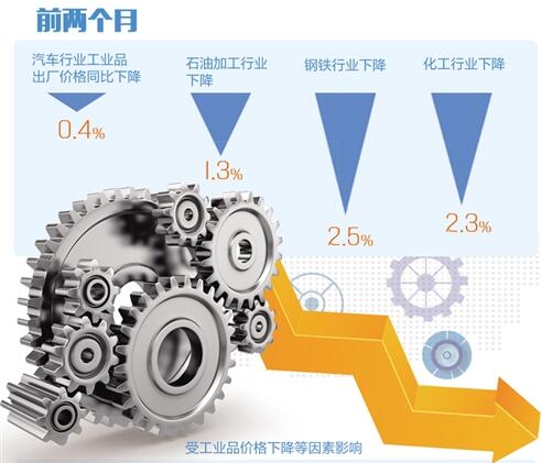 数据显示,前两个月,汽车行业工业品出厂价格同比下降0.4%,石油加工行业下降1.3%,钢铁行业下降2.5%,化工行业下降2.3%。受工业品价格下降等因素影响,汽车行业利润同比减少370.7亿元,石油加工行业减少317.3亿元,钢铁行业减少290.6亿元,化工行业减少188.8亿元,上述4个行业合计下拉利润增速14.2个百分点。