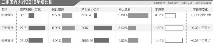 从已经发布年报的三家国有银行2018年业绩来看,国有大行资产规模、营业收入、净利润等均保持增长态势,但增长速度有所不同。-甘俊
