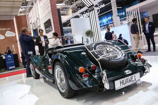 4月1日,在德国汉诺威,参观者观看华为展区展出的一辆汽车。(新华社)