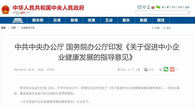 据新华社消息,近日,中共中央办公厅、国务院办公厅印发了《关于促进中小企业健康发展的指导意见》(本文称《指导意见》)。