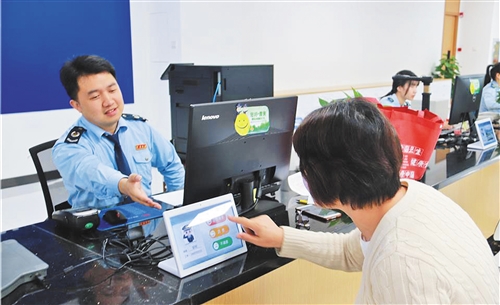 日前,纳税人来到深圳市龙华区观湖税务所利用“无纸化”自助办税设备办税。通过运用智慧科技手段,深圳市税务局推行无纸化办税、智能化办税等便民举措,不断提高办税效率,大幅减少纳税人办税成本。 杨阳腾摄
