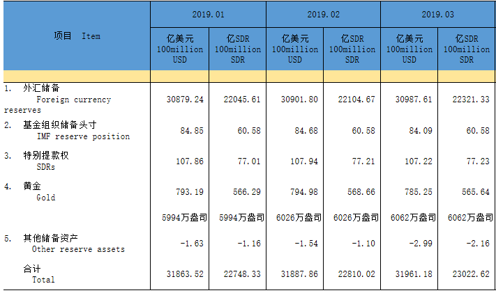 官方储备资产(2019年) 图片来源:国家外汇管理局