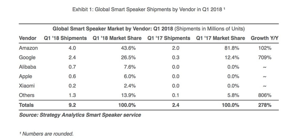 Strategy Analytics 2018年一季度智能音箱市场报告