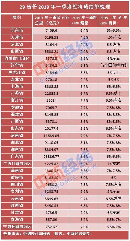 紧随其后,各省份一季度经济数据也陆续公布。截至目前,31省份中,29省份已公布一季度经济数据,西藏和新疆尚未公布。