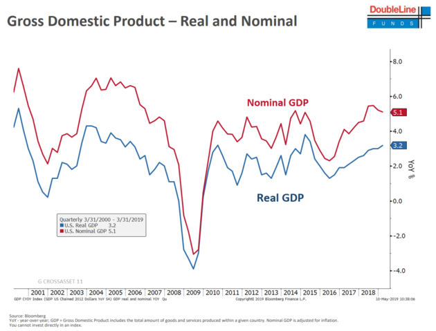 一季度美国的GDP平减指数下跌到只有0.9%,创下2016年一季度以来的新低。新债王预计,二季度,随着物价反弹,实际GDP会更加不如人意。