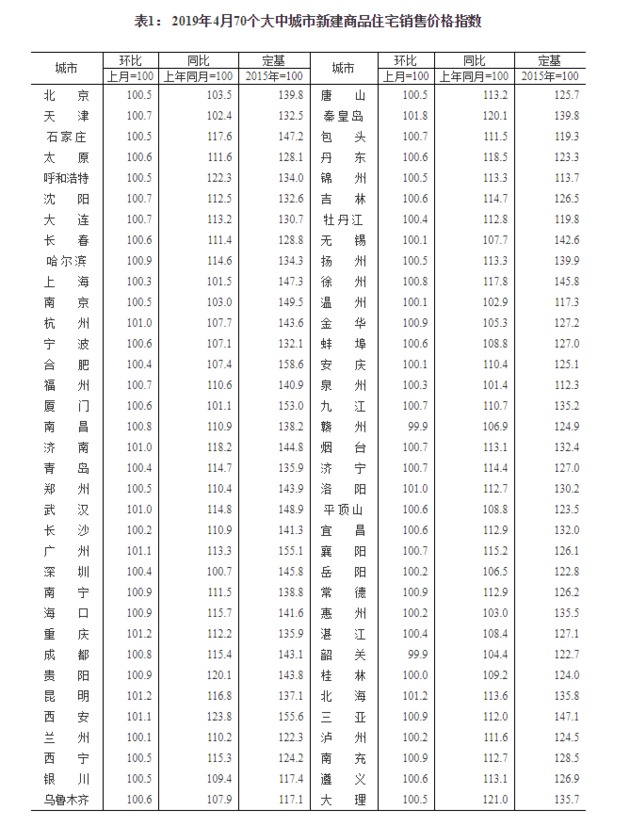 中国4月70大中城市中有67城新建商品住宅价格环比上涨,3月为65城;环比看,秦皇岛涨幅1.8%领跑,北上广深分别涨0.5%、涨0.3%、涨1.1%、涨0.4%。北上深二手房分别涨0.6%、0.5%、1.1%,广州跌0.4%。(统计局网站)