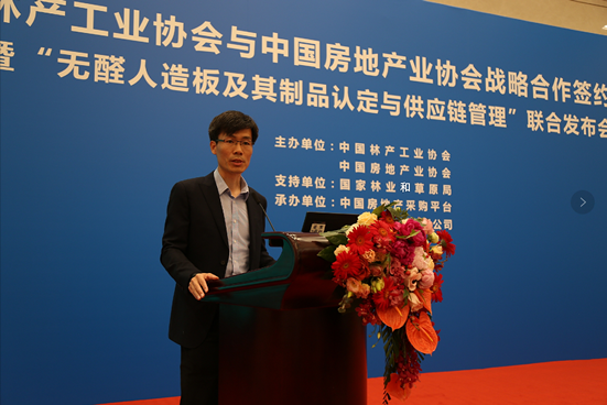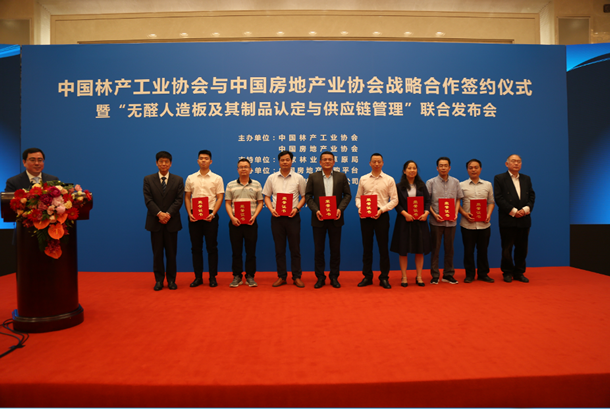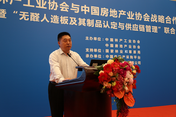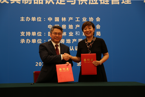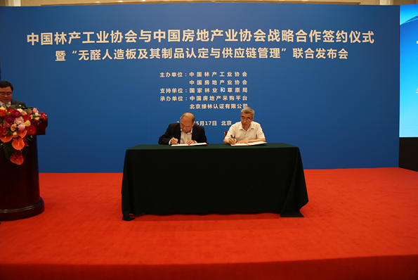 会上,中国林产工业协会和中国房地产业协会就《无醛人造板及其制品认定与供应链管理》框架协议举行了签字仪式。