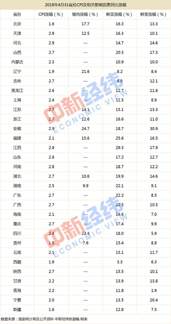 5月23日电 (张澍楠)全国31省份2019年4月CPI数据相继出炉,“蒜你狠”“车厘子自由”“香椿自由”等热议话题近期也重回大众视野,在菜价、水果价的强势围攻下,各省CPI又有何表现?