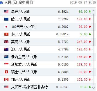 5月27日,人民币兑美元中间价上调69个点,报6.8924,创4月18日以来最大升幅,上一交易日中间价报6.8993;上一交易日官方收盘价6.9050,上一交易日夜盘收盘价6.9005。同时,中国央行公开市场进行800亿元7天期逆回购操作,今日无逆回购到期。