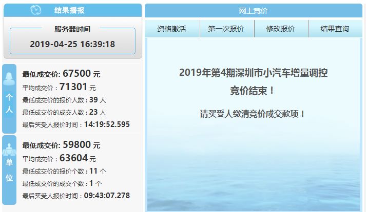 深圳:车牌平均成交价为71301元;