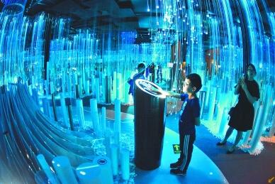 观众在数博会“追梦·未来”数字艺术特展上体验艺术作品《数据笙林》。新华社记者 杨文斌摄