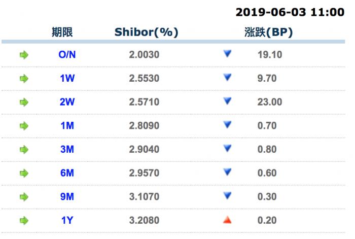 随着央行投放和市场逐步恢复稳定,资金价格也从5月30日开始走低,6月3日,午盘DR007加权利率约为2.47%,同业拆借DIBO007加权利率则报2.6790%。在Shibor方面,各期限shibor均出现不同程度的下行,其中隔夜Shibor下降19.10BP报2.0030%,14天shibor下降23.00BP报2.5710%。