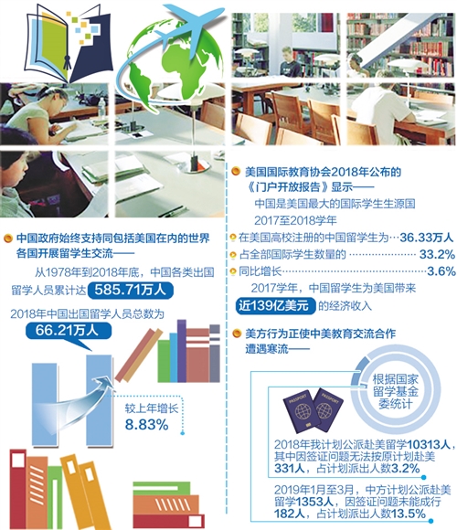 徐永吉表示,中方始终认为,不管政治经济关系如何变化,教育交流合作要始终保持自信和定力。中国政府始终支持同包括美国在内的世界各国开展留学生交流。从1978年到2018年底,中国各类出国留学人员累计达585.71万人。2018年,中国出国留学人员总数为66.21万人,较上年增长8.83%。未来,中国政府将继续秉持“支持留学、鼓励回国、来去自由、发挥作用”的方针,继续同各国相互借鉴教育理念和管理经验,不断加强人员往来,共同推动教育发展。