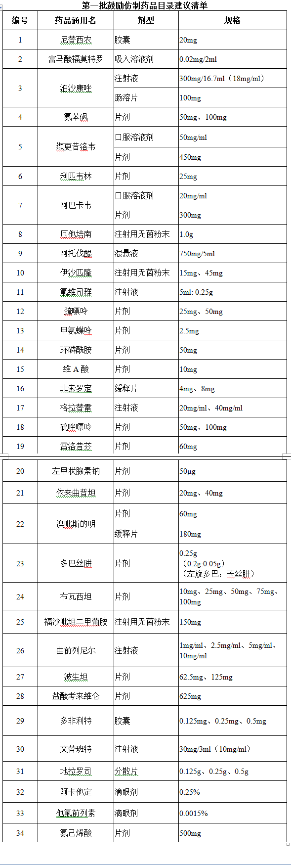 6月20日,国家卫健委公示第一批鼓励仿制药品目录建议清单,共34个药品,公示期为5个工作日。