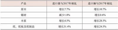表三 2018年我国主要林产品进口情况