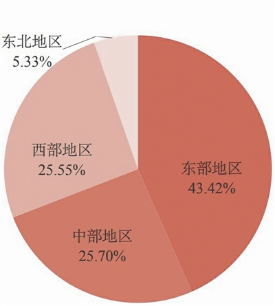 图二 2018年全国林业产业总产值分区域比重