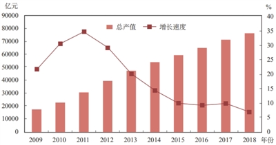 图一 2009-2018年全国林业产业总产值及其增长速度